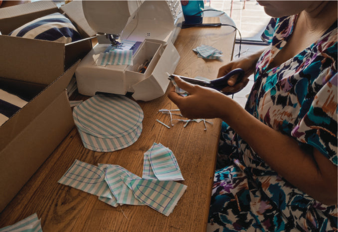 Les textiles sélectionnés pour ce kit couture à faire soi-même sont des textiles de seconde main ou voués à la destruction, permettant des séries limitées voire des modèles uniques.
